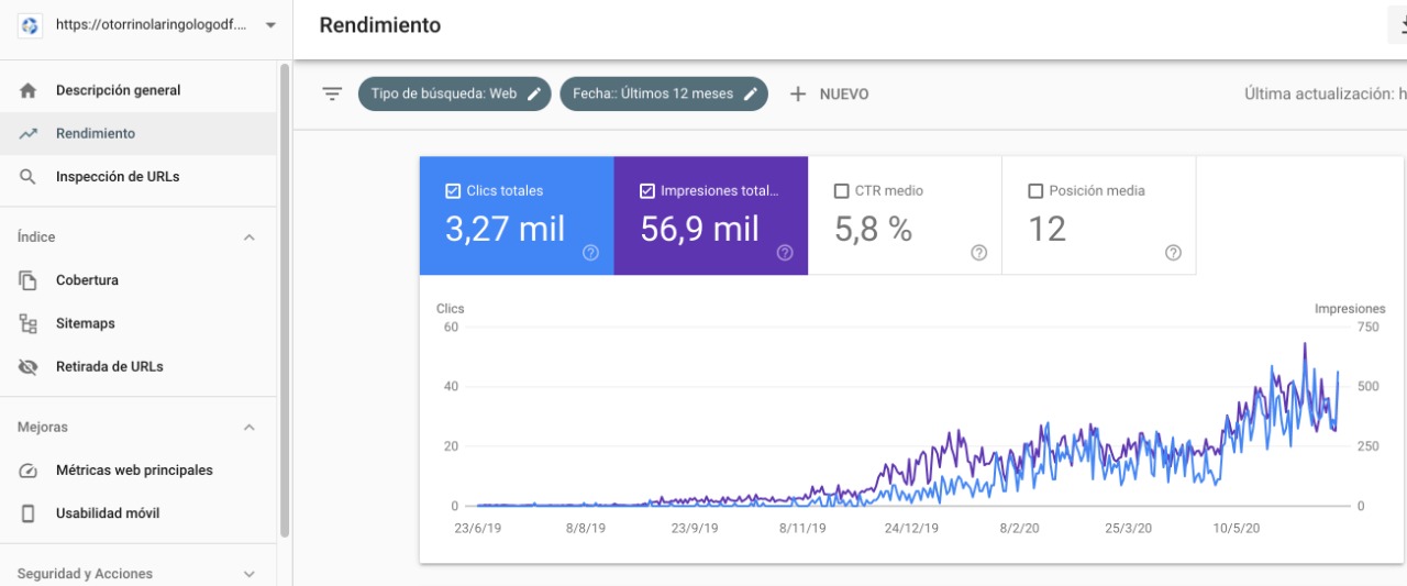 Página Web de Otorrino en CDMX, de 0 visitas a 3270 visitas orgánicas + VISITAS en anuncios en Google, traduciendo estas visitas en pacientes constantes por mes.